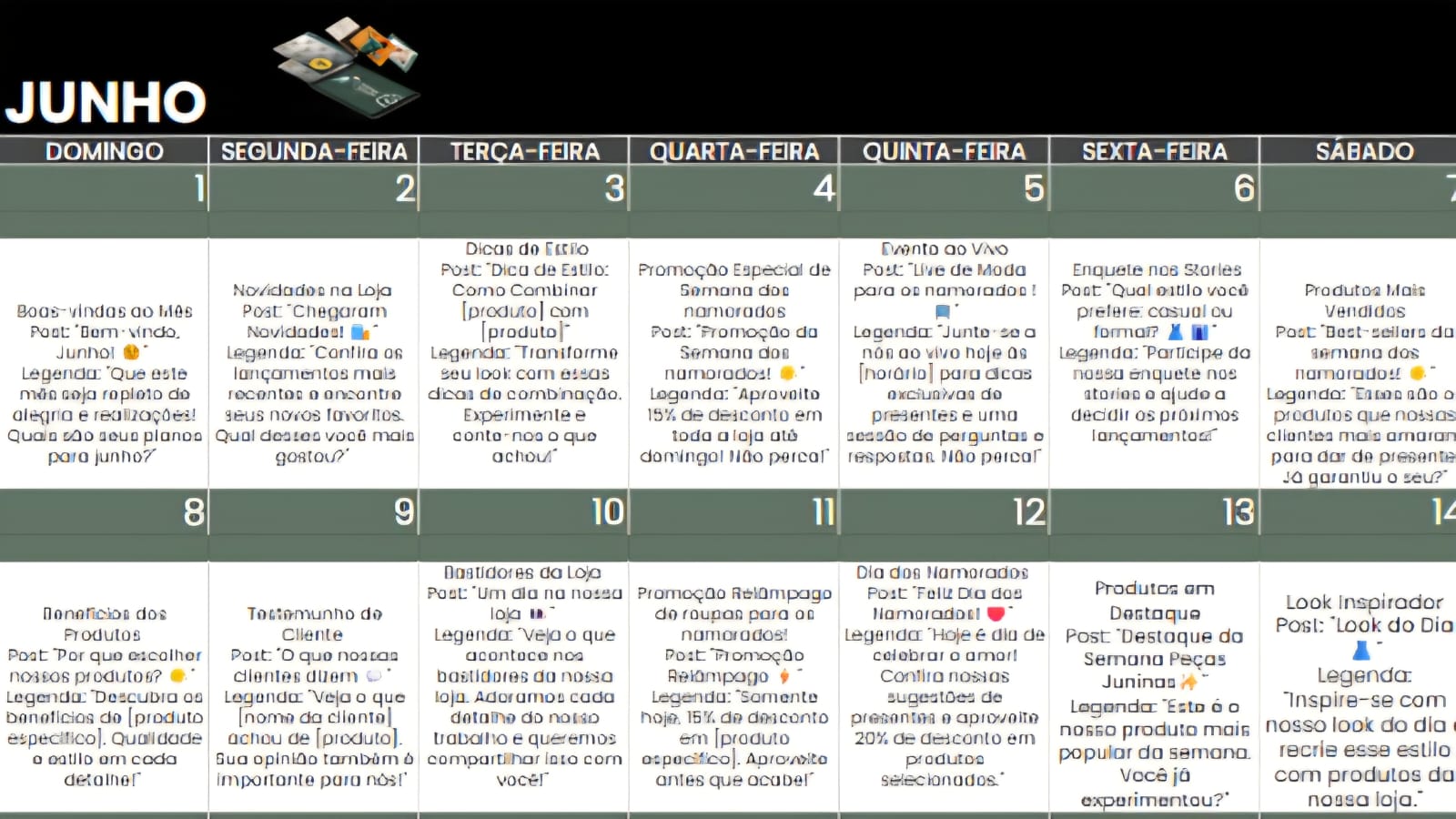 Receba um calendário de ideias de posts + legendas para garantir consistência e AUMENTAR SUAS VENDAS